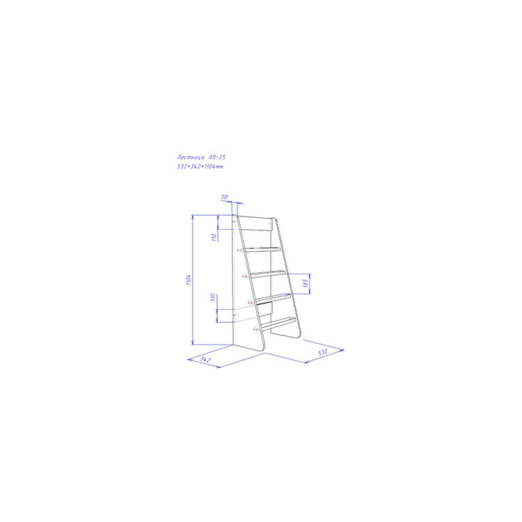 Устойчивая лестница из массива сосны – четыре широких удобных ступеньки, хороший безопасный наклон.